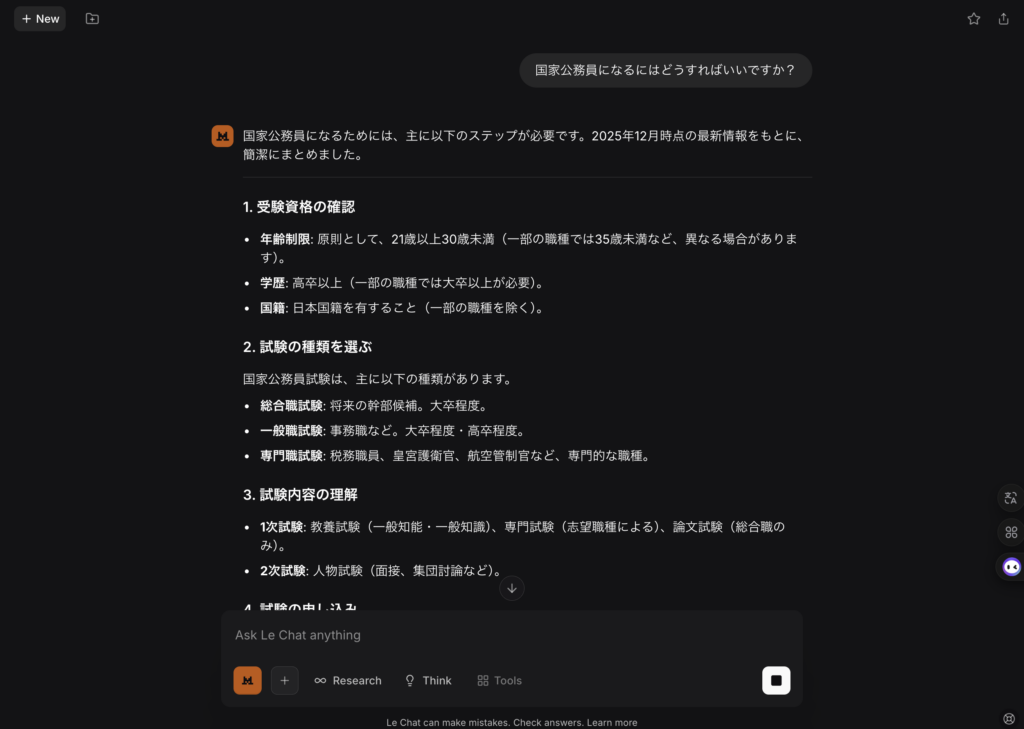 おまけですが、Mistralを実際に使ってみました。