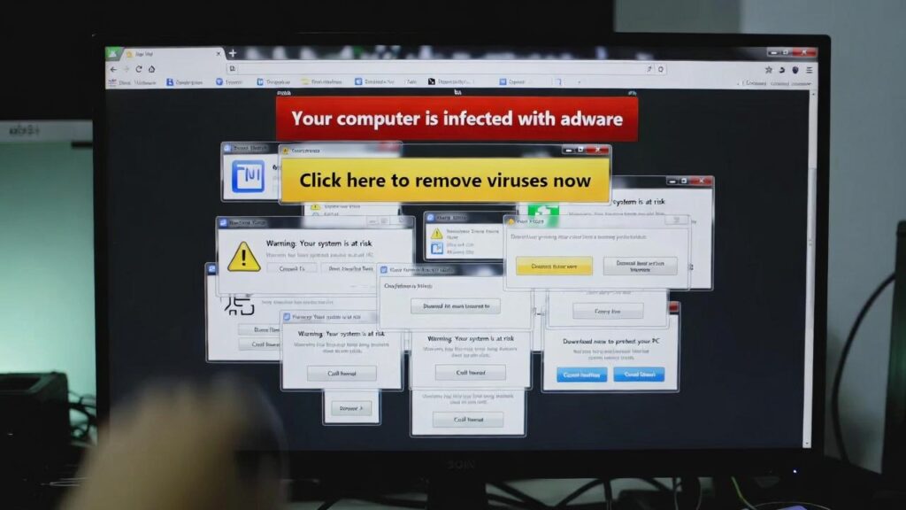 - ウェブブラウザを開くと、大量のポップアップ広告が表示される