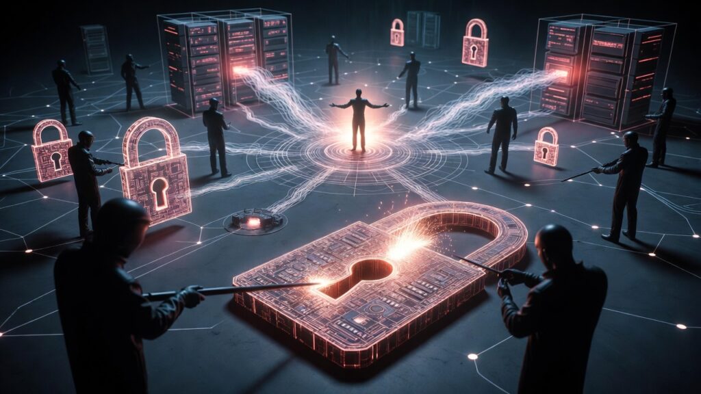 ステップ4:権限の拡大(家の中を自由に動き回る) 最初に乗っ取ったパソコンを起点に、社内ネットワーク内の他のパソコンやサーバーにも侵入を広げていきます。管理者のパスワードを盗み出し、より多くのシステムにアクセスできる権限を手に入れます。