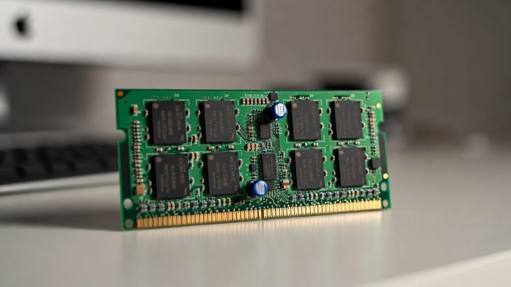 身近なたとえ: CPUを「料理人」、メモリを「作業台」、ハードディスクを「冷蔵庫」と考えましょう。料理人(CPU)は毎回冷蔵庫(HDD)まで取りに行くのは遅いので、よく使う材料は作業台(メモリ)に出しておきます。メモリはこの「作業台」の役割です。