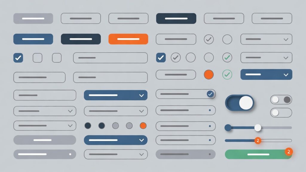 チェックボックスは、複数の選択肢から複数の項目を選べる四角いボタンです。「□メルマガを受け取る」のような同意チェックがよく使われます。